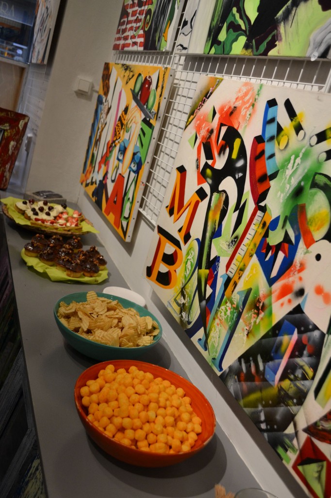 Konstnärinnan som ställer ut heter Magdalena Borkowska och hennes konst är färgstark, explosiv…cool. Jag hittade referenser till Dalí, Mirò, Kandinsky…kanske lite Chagall. Fotorealistiska fält mixade med färgstarka, mer graffitti-liknande. Som graffitti inspirerat av ovan nämnda konstnärer och en del annat.  Häftigt!