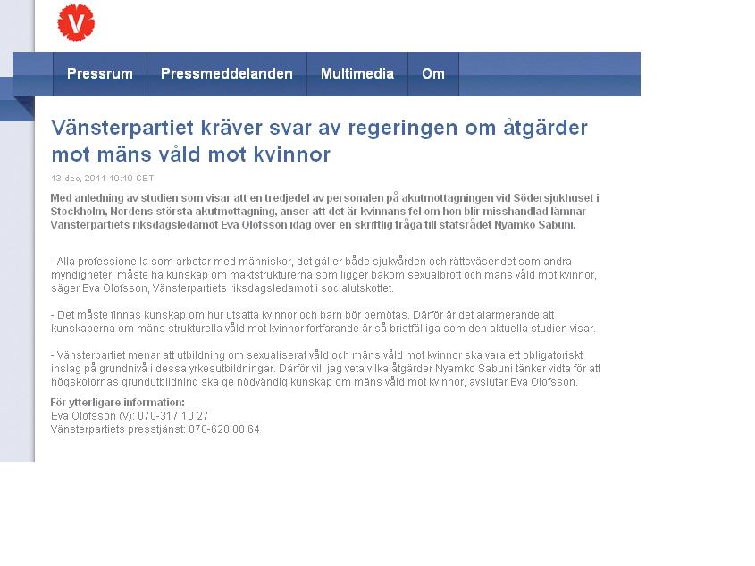 Vänsterpartiets hemsida 13.12.2011. Detta är två exempel, jag har inte hunnit se efter på de andra partiernas hemsidor.