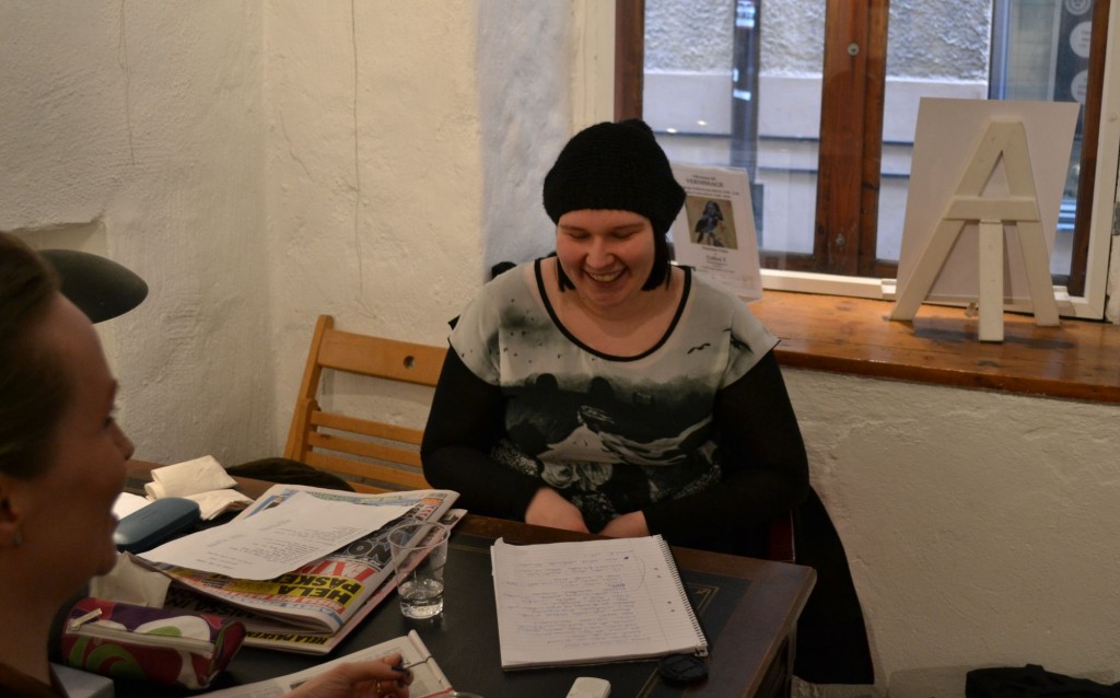 Konstnärinnan Sylvia Rhedin kom förbi under intervjun…