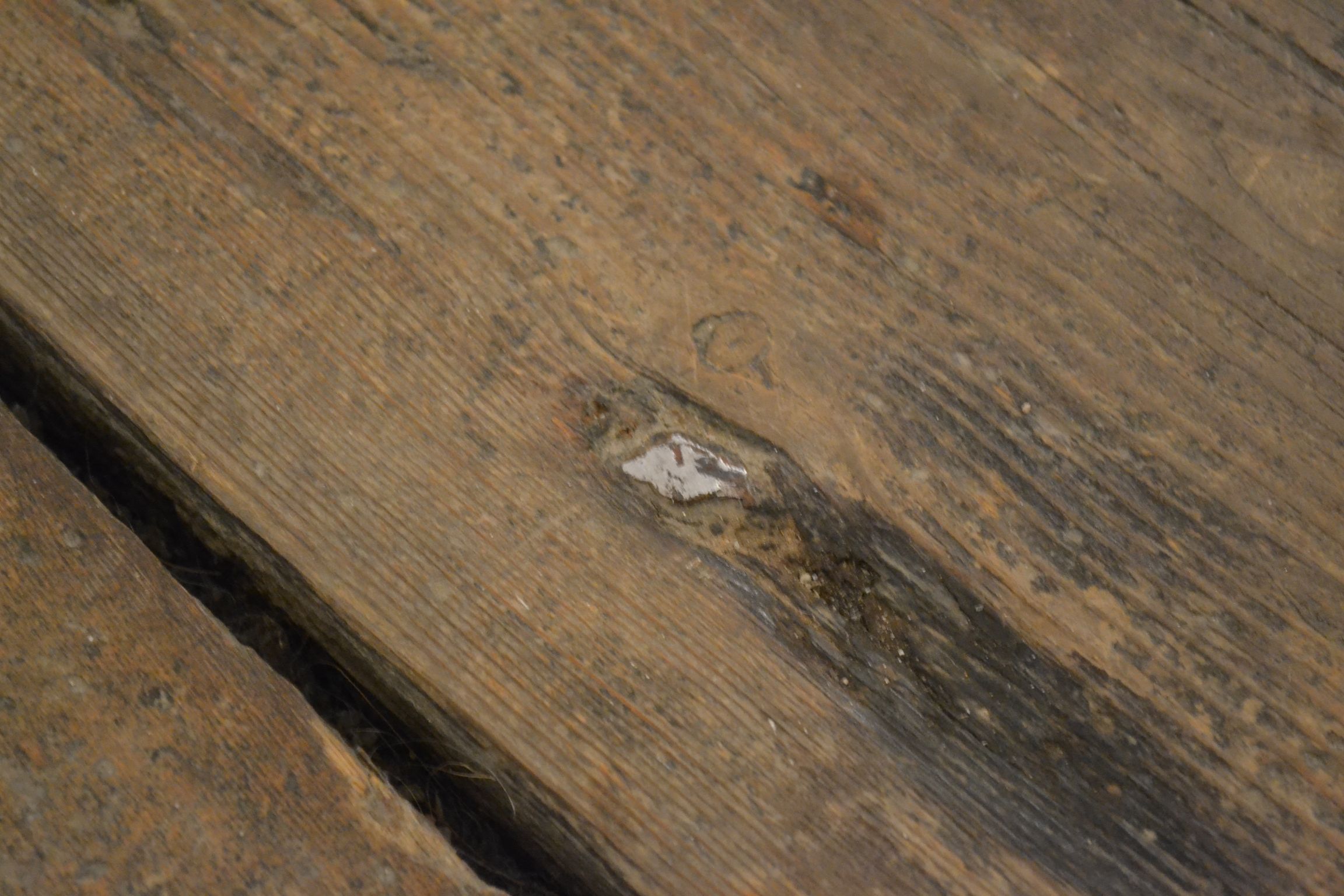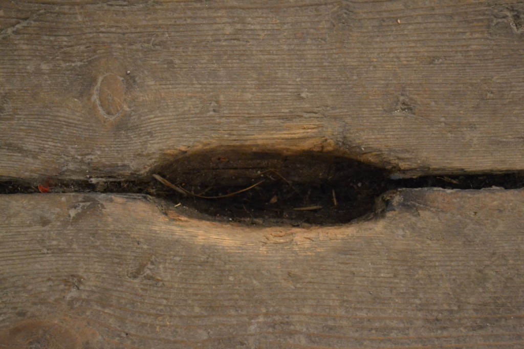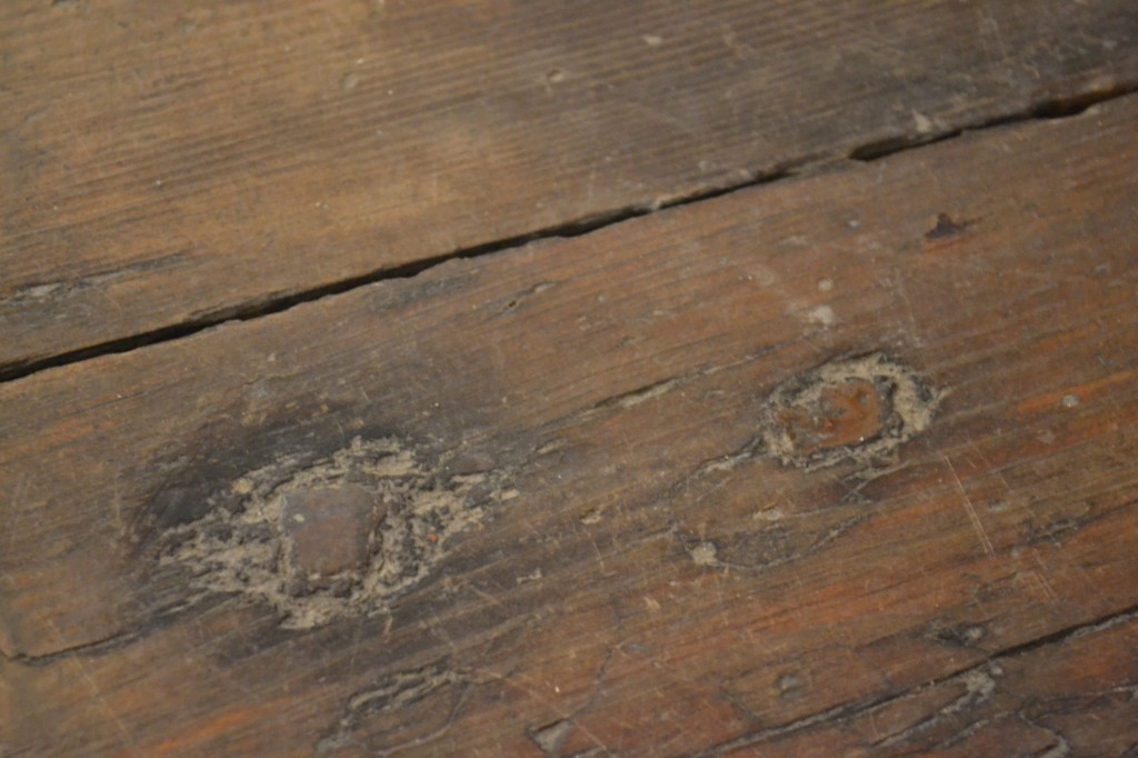 Golvplankorna har några år på nacken. Spikarna ser också handgjorda ut…