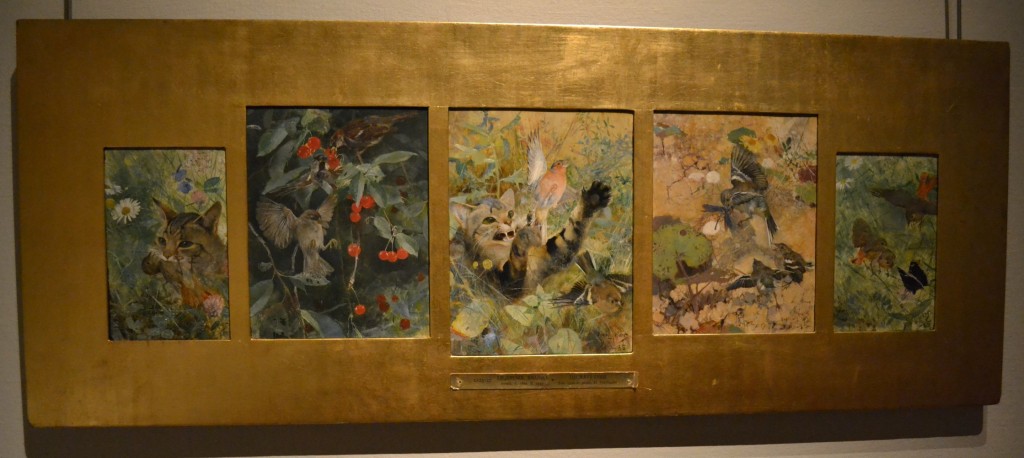 Fem katt- och fågelstudier av Bruno Liljefors