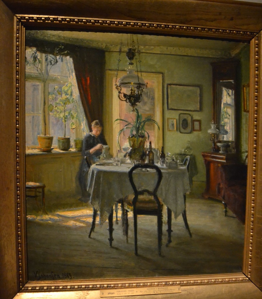 Viggo Johansen, Solsken i Matsalen 1899. En inspirationsbild till min dröm om en sekelskiftesinredning. Detta matrum är inte fullt så belamrat som sekelskiftesrum ofta är, vilket tilltalar mig. Sekelskifte med en touch av ljust och fräscht.