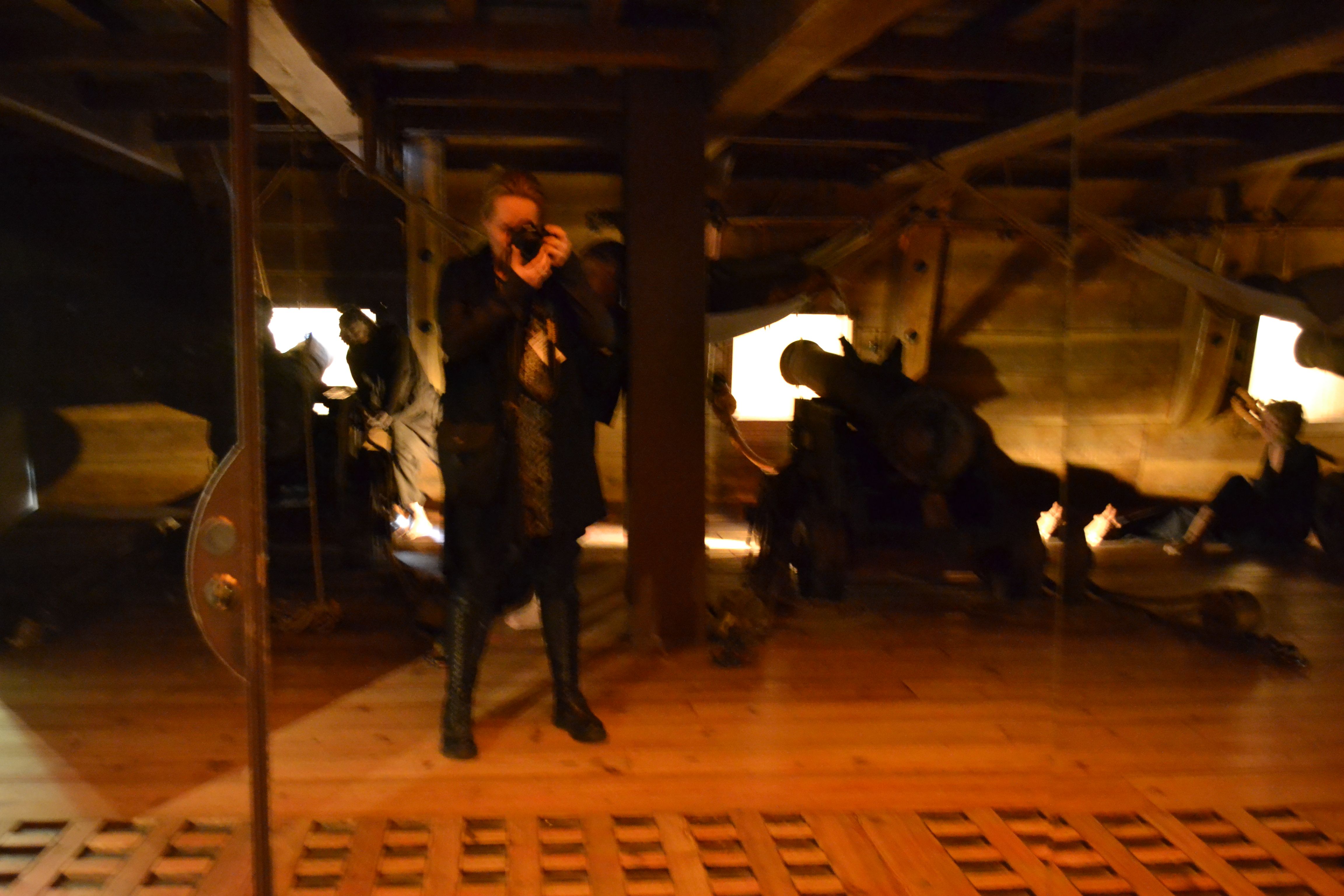 Här skapades en illusion av att besökaren själv befann sig på ett av skeppets däck med hjälp av tonade speglar…