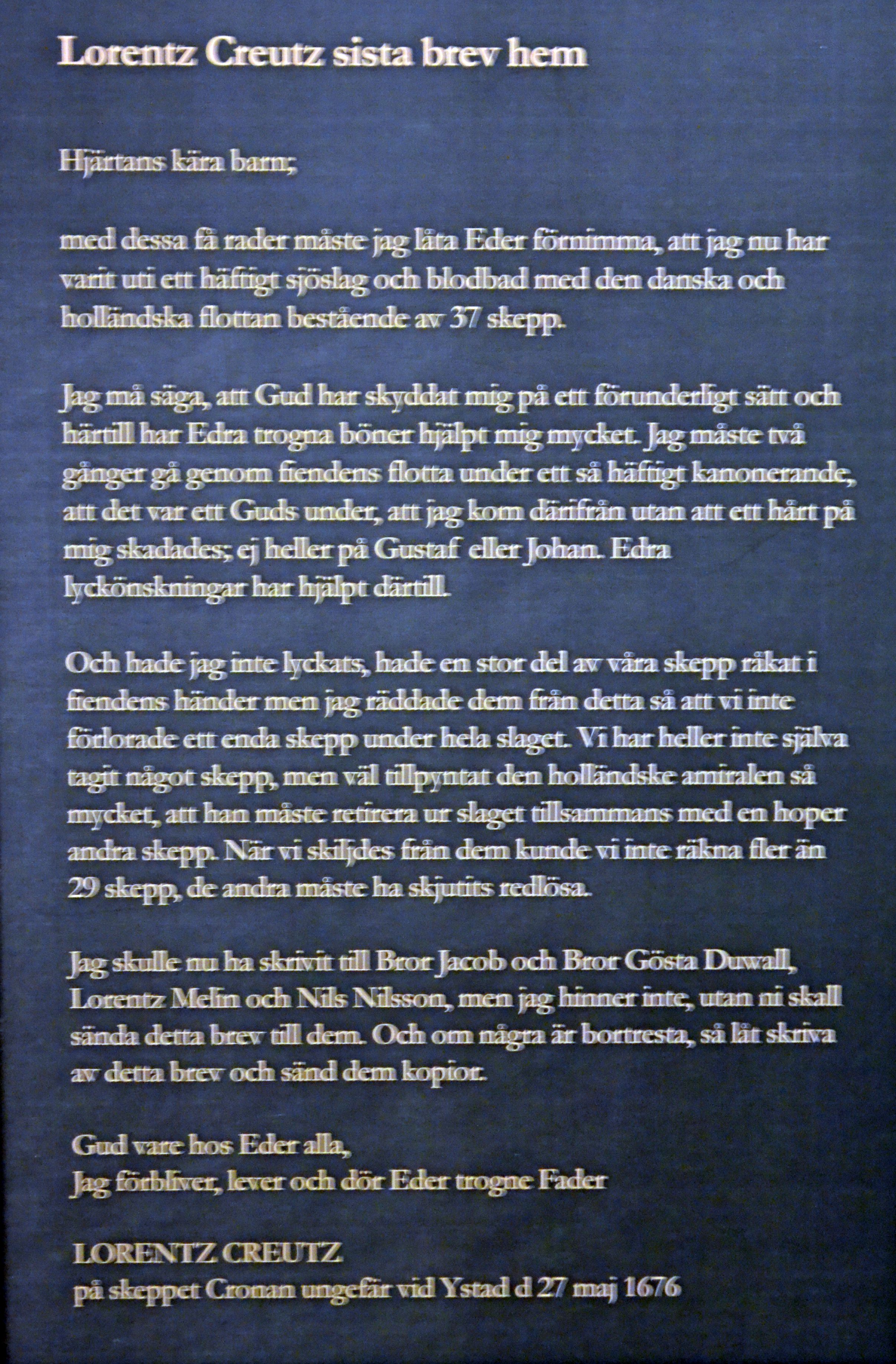 Lorenz Creutz sista brev. Creutz, amiralgeneralen, saknade militär och marin erfarenhet.